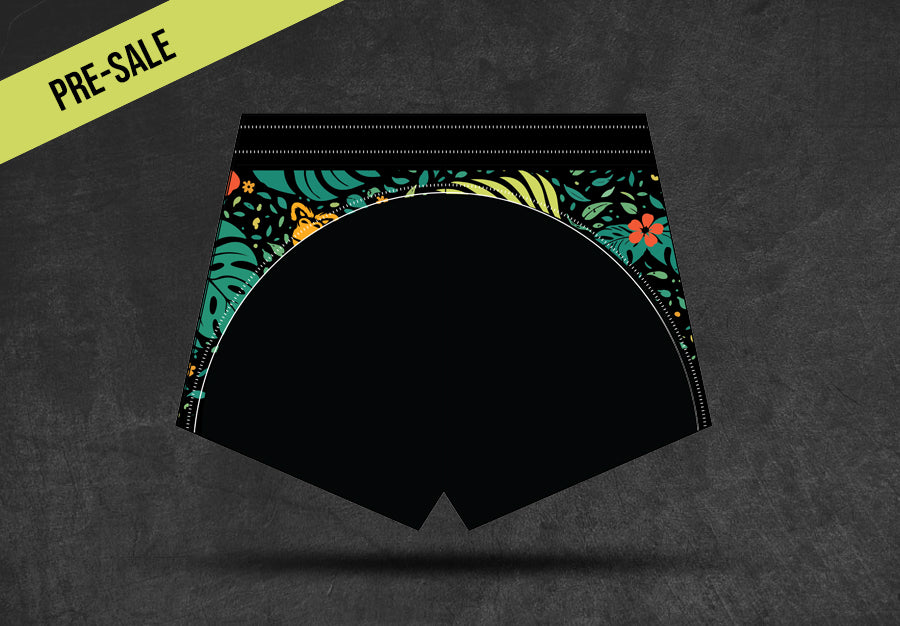 Crafted for the modern ape who rules the court and conquers the beach, these shorts feature a sleek black base exploded with an all-over banana leaf print – a bold nod to the jungle king himself. Quick-drying, ultra-lightweight fabric keeps you moving freely whether you're spiking over the net, diving into the ocean, or chilling post-game.